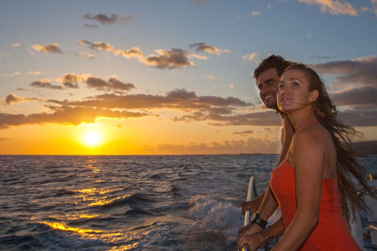 Join us aboard our Kauai-built 65’ power catamaran and sightsee the NaPali Coast with your friends, family and loved ones. There’s nothing like experiencing a Kauai sunset from the water. Enjoy our fresh, locally-made dinner and pupus (appetizers) as you sip champagne, mai tais, beer, wine, soda or fruit juices. Experience the vivid colors of the sky, ocean, and coastline as the sun sinks into the sea. Make sure you bring your camera to capture this spectacular moment.